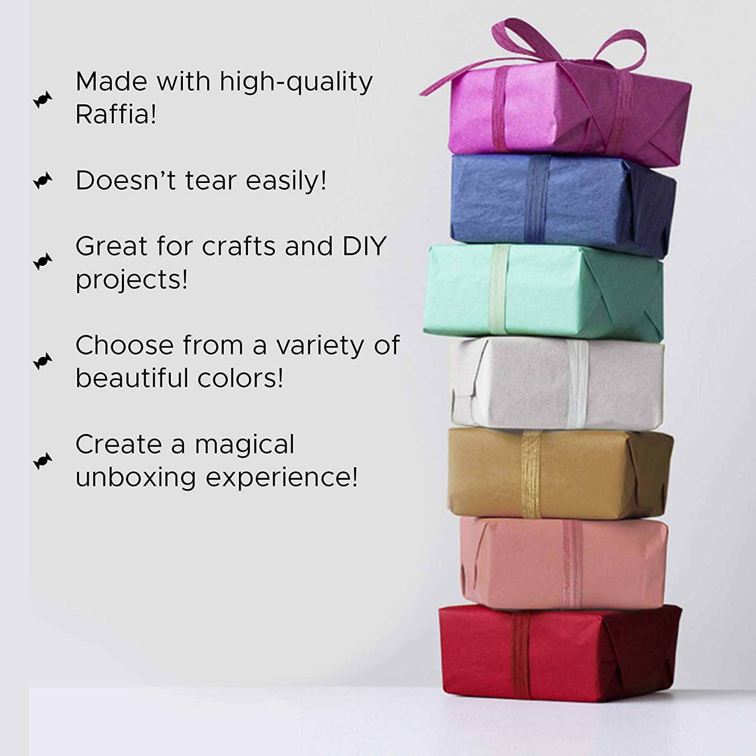 - š GOLD RIBBON FOR WRAPPING: Creating ribbons and bows for gifts or adding decorative ribbons for gift wrapping is simply effortless with our colored raffia ribbon. Coordinate with gold wrapping paper for a monochromatic look. Or find other bonbon paper gift supplies and decorations diy craft and arts. Browse to see other colors of our raffia ribbons for crafts.